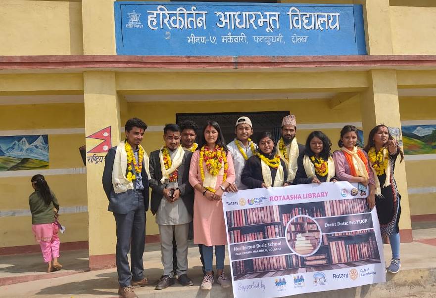 Rotaract club of Sukhedhara and Baneshore were able to donate a total of 1176 books to Hari Kirtan Basic School with financial support from the Asha Project. Rotaractors also conducted fun programs such as musical chair, balloon blast games and and spoke with students about how they can benefit from this library and getting to know the children and their lifestyle. According to Chandra Bhakta Adhikari, coordinator of this event “It was a very fulfilling event being able to help poor children in Dolkha and in this event we gained the goodwill of the teachers and the greater appreciation from school students” School library books consists of new novels, course books and books regarding general knowledge and world geography.