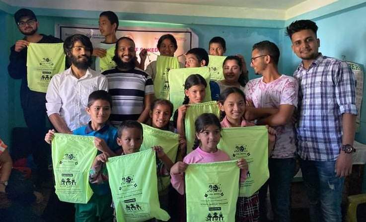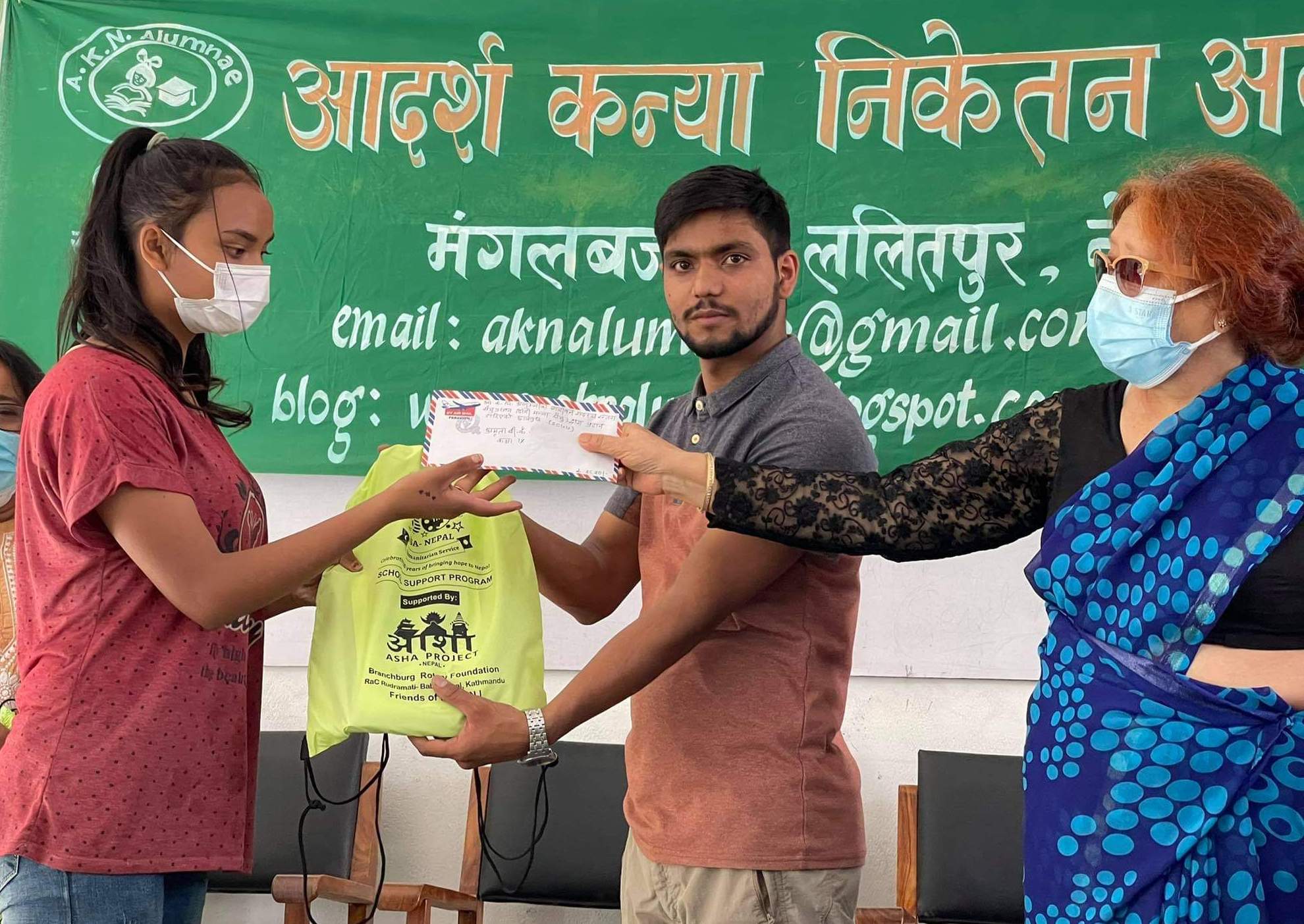 School supplies and scholarship distribution at the Adarma Kanya School in Patan.