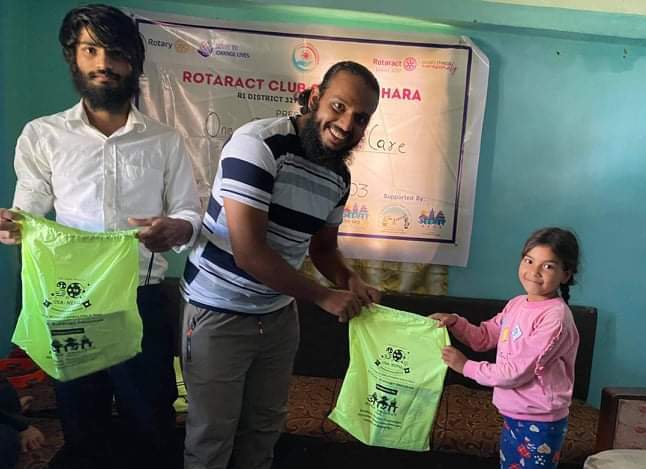 School supplies distribution at a orphanage in Kathmandu by Rotaract club of Sukhedhara. Past President Chandra Acharya.