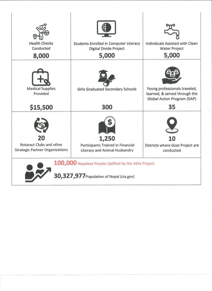 In January and February 2020 we kicked off Humanitarian Mission 2020. This mission is about building hope and opportunity for the people of Nepal. We conducted health camps, sponsored schools and orphanages, and did needs assessments to further develop our impact in Nepal. #Peopleofaction #rotaryinaction #theashaproject #FONNJ #sustainabledevelopment #humandevelopment